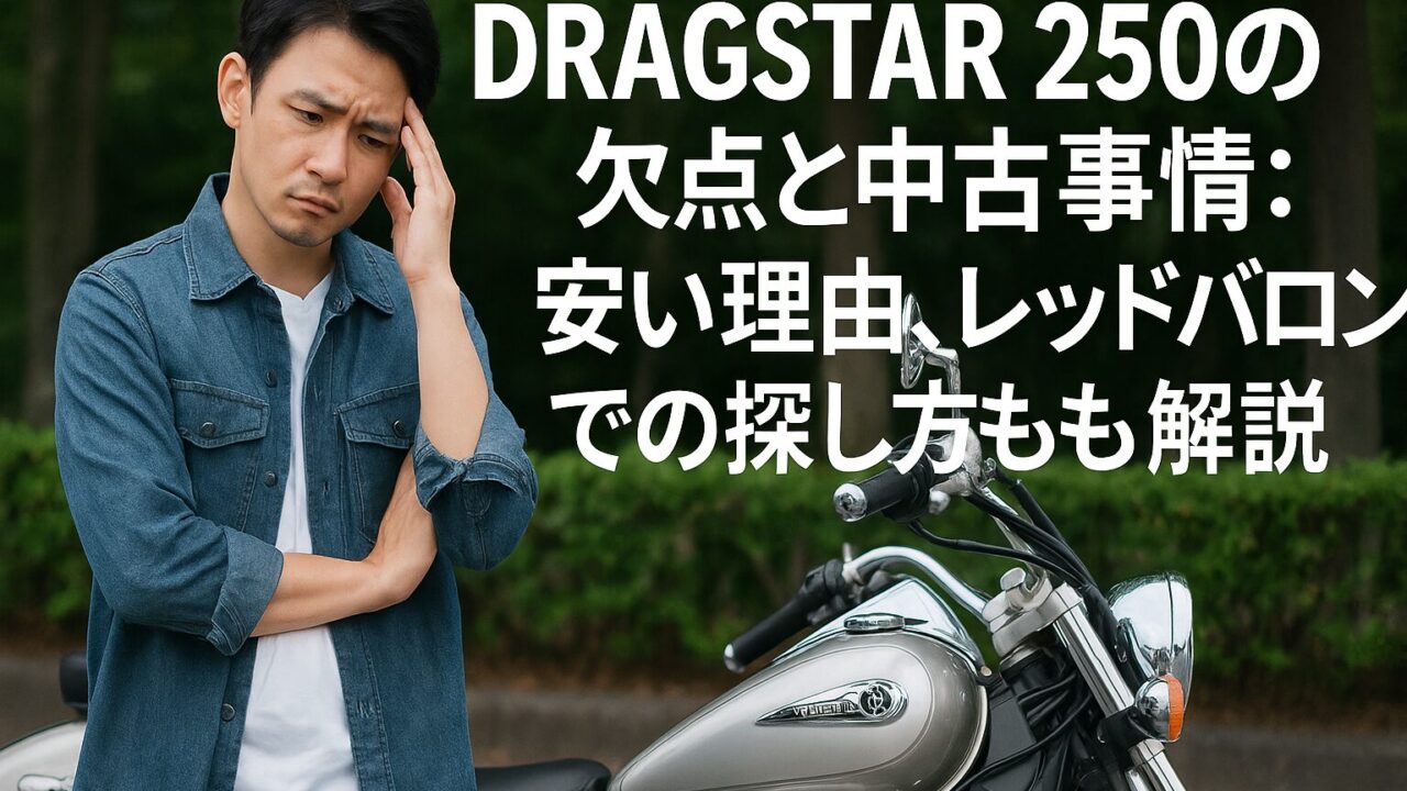この記事では、ドラッグスター250が持つ欠点や、中古市場での価格形成の背景、そしてレッドバロンをはじめとする販売店での中古車選びのポイントについて、詳しく解説していきます。